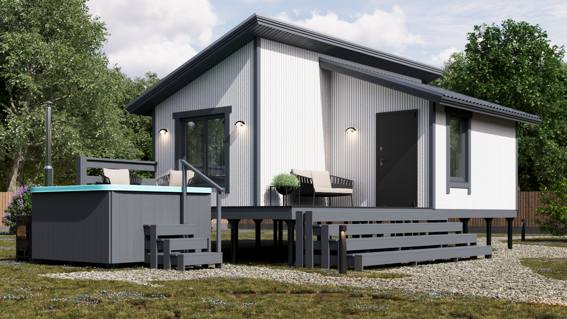 Мы предлагаем выгодные варианты комплектации бань и каркасных домов совмещенных с баней